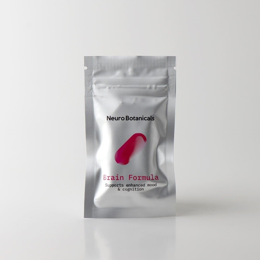 Made with non-intoxicating dose of magic mushrooms each capsule has a blend of Psilocybe Cubensis (magic mushrooms), Lions Mane mushrooms, and Niacin. Each pack of Neuro Botanicals includes 10 capsules. Non caffeinated.