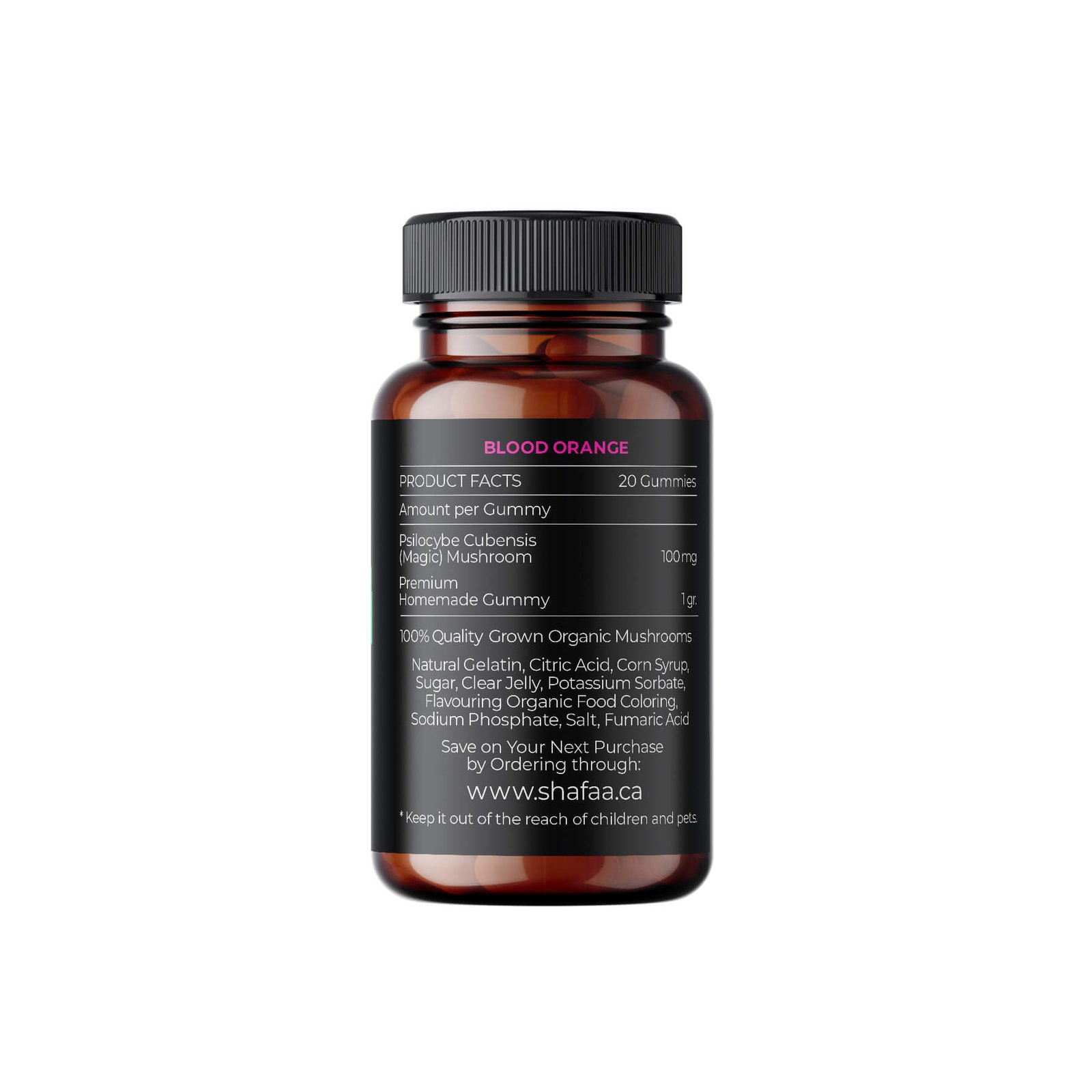 Each bottle consists of 20 gummies (each gummy contains 100mg of shrooms):